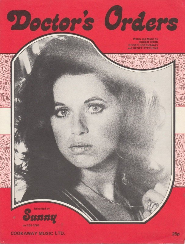 Vintage 1970s sheet music of this Sunny hit single from The Brotherhood Of Man just after she had first began her solo career in 1973 and as she had just got pregnant she appropiately released this song all about the storyline of a woman consulting a doctor over intimate concerns "Doctor's Orders"reached top 10 status in both England and Ireland and this vintage rarely found sheet music on Cookaway Music is in great condition and bar occasional very small imperfections is absolutely prestine