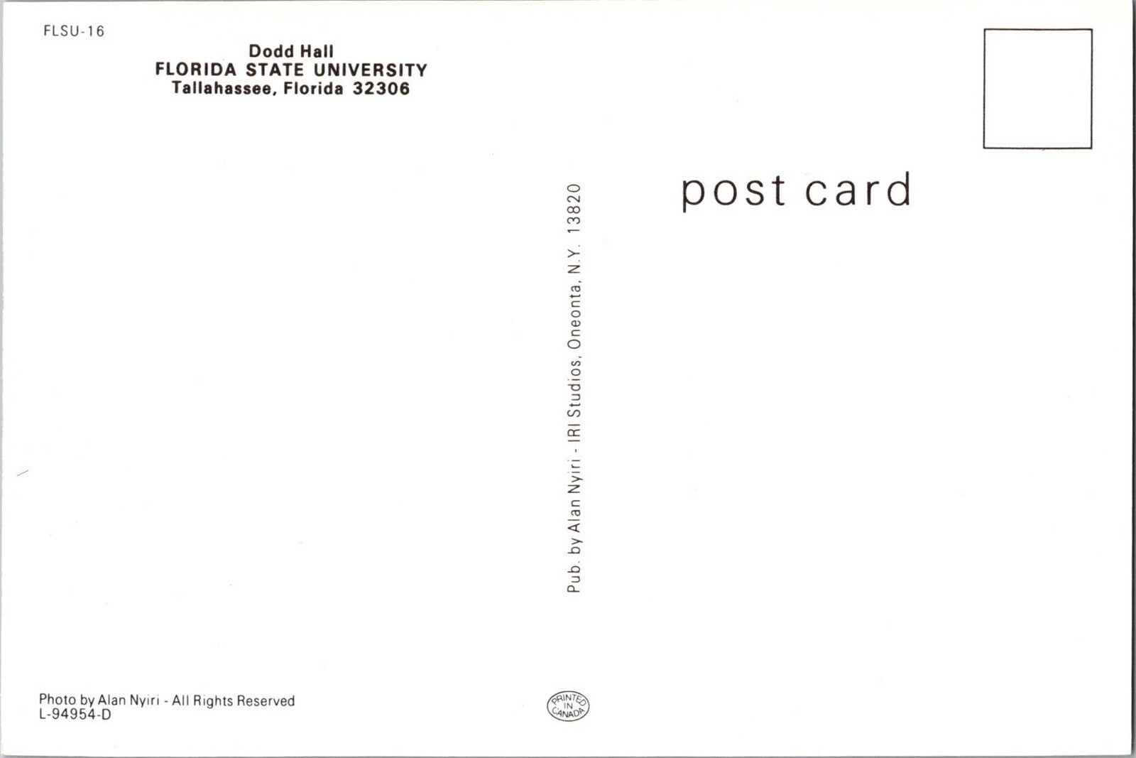 Dodd Hall FLORIDA STATE UNIVERSITY Tallahassee Postcard CE13