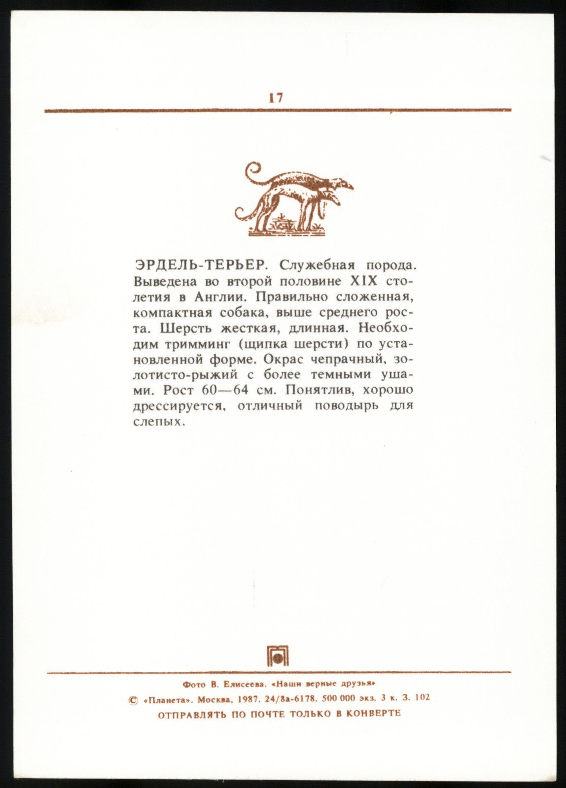 DOG Airedale Vintage Real Photo Soviet Postcard