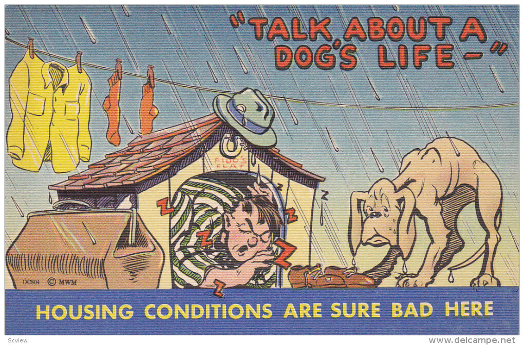 Dog Comic , 30-40s ; "Talk about a dog's life" :: Postcard , 3.5 by 5.5" , Linen , EX