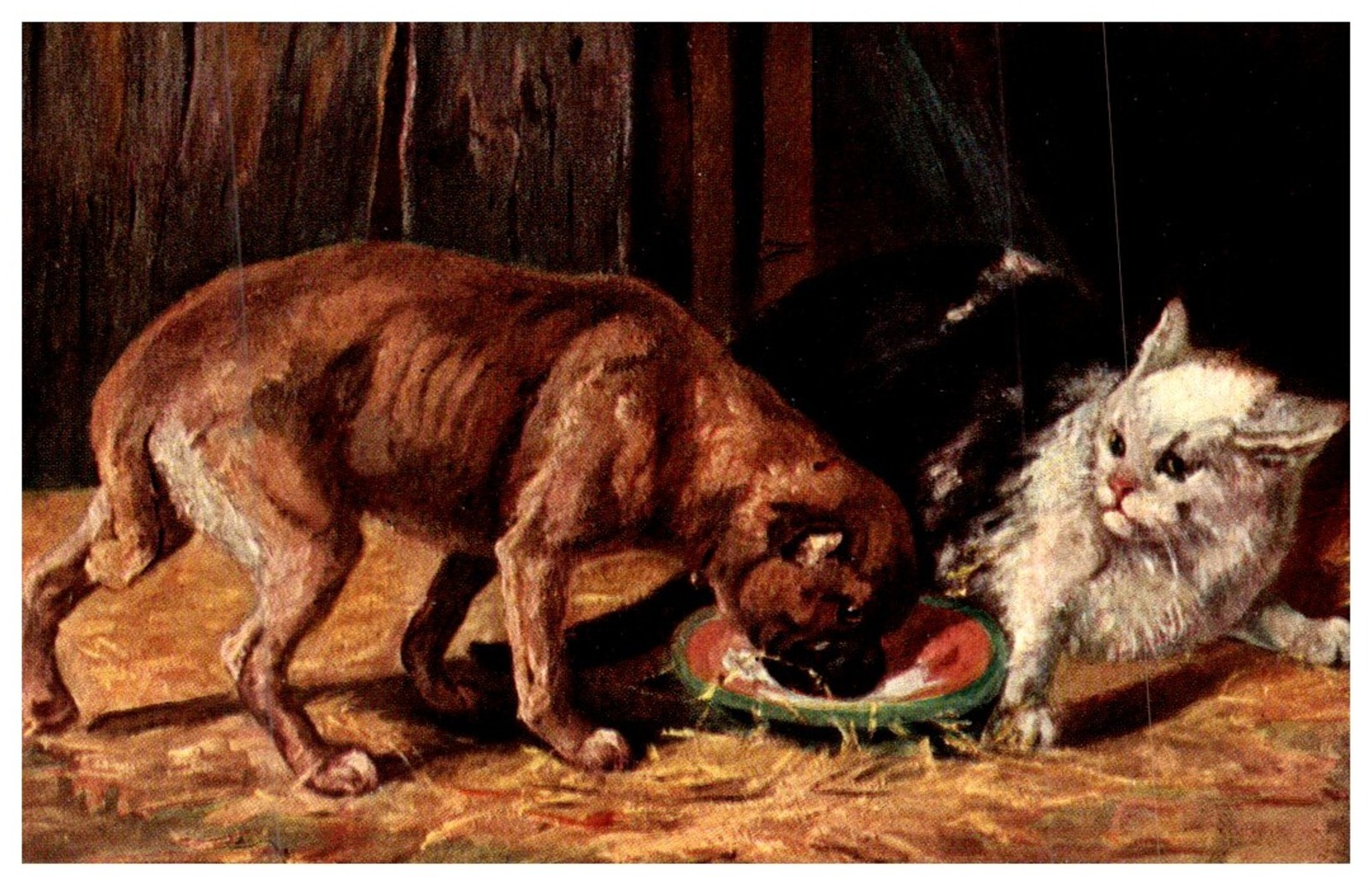 Dog , Dog and cat , milk dish