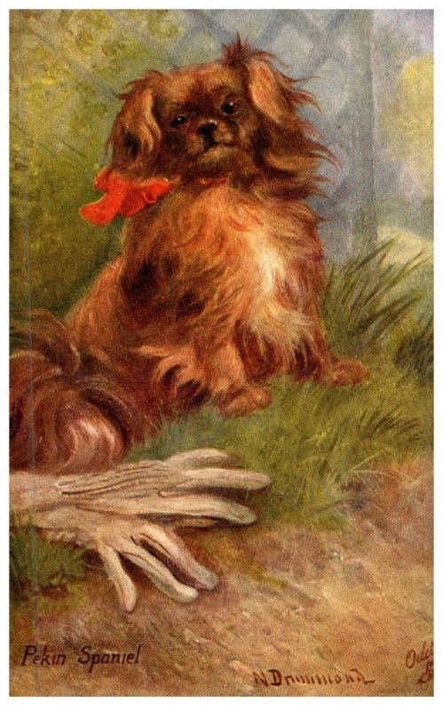 Dog , pekin Spaniel , artist signed