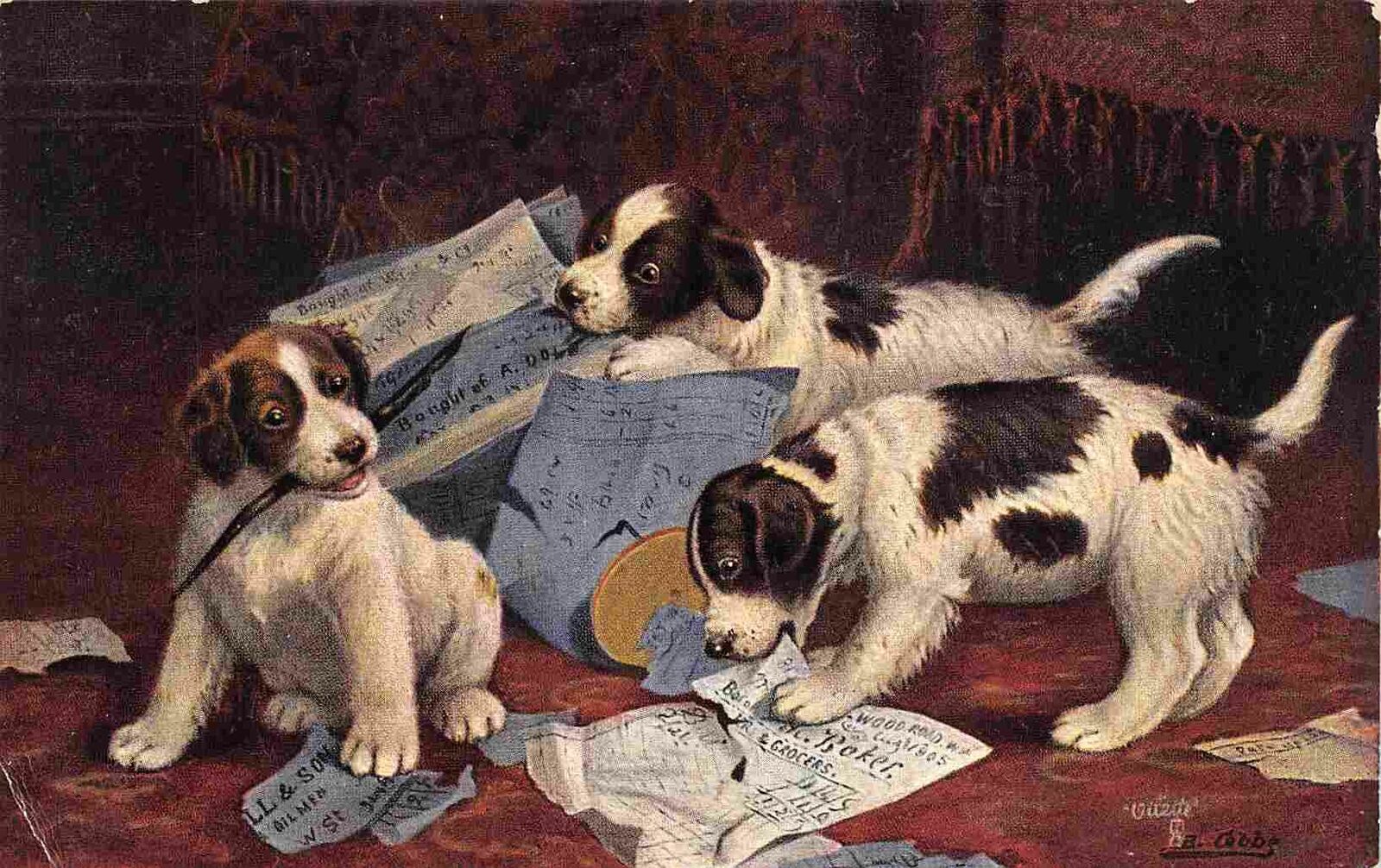 Dog Puppies Settling Accounts 1910c Tuck postcard