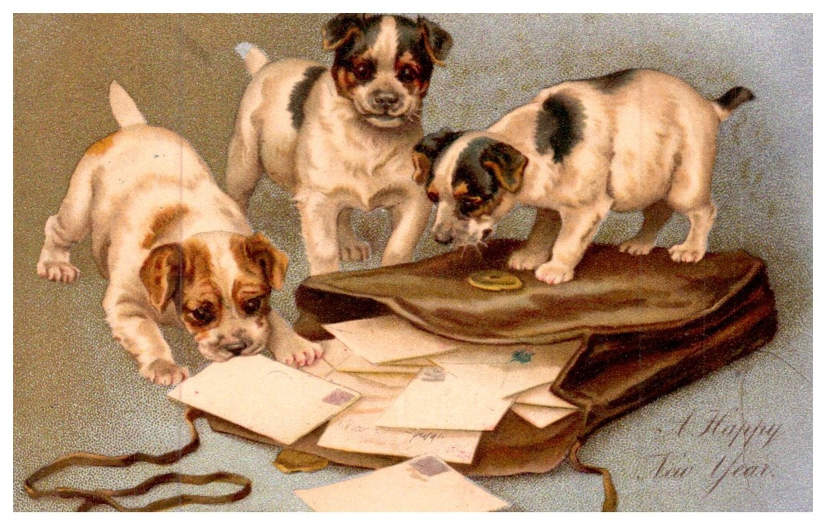 Dog , Terrier puppies tearing briefcase