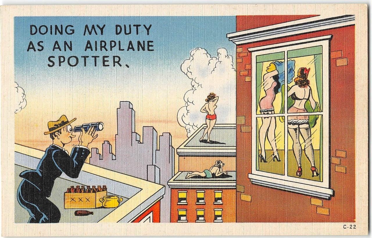 "Doing My Duty" Topless Women Risque Comic Peeping Tom 1940s Vintage Postcard