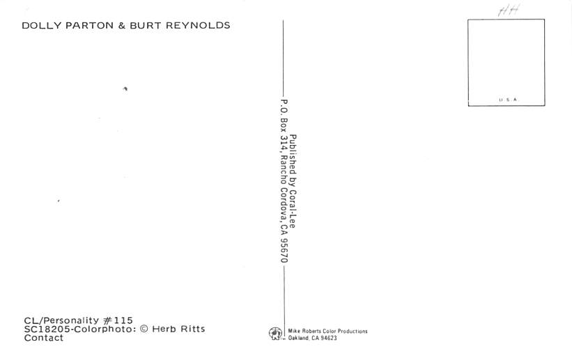 Dolly Parton & Burt Reynolds Postcard Unused, Grade: 1, , Size: Regular size: Approx 3 1/2 X 5 1/2 inch (9 cm X 14 cm) Grading Scale: Grade 1 = Perfect corners Grade 2 = Very Minimal corner wear, no creases Gr ... Read More