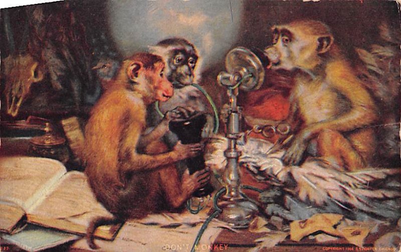 Don't monkey around Telephone Postcard Unused, Grade: 4, , Size: Regular size: Approx 3 1/2 X 5 1/2 inch (9 cm X 14 cm) Grading Scale: Grade 1 = Perfect corners Grade 2 = Very Minimal corner wear, no creases G ... Read More