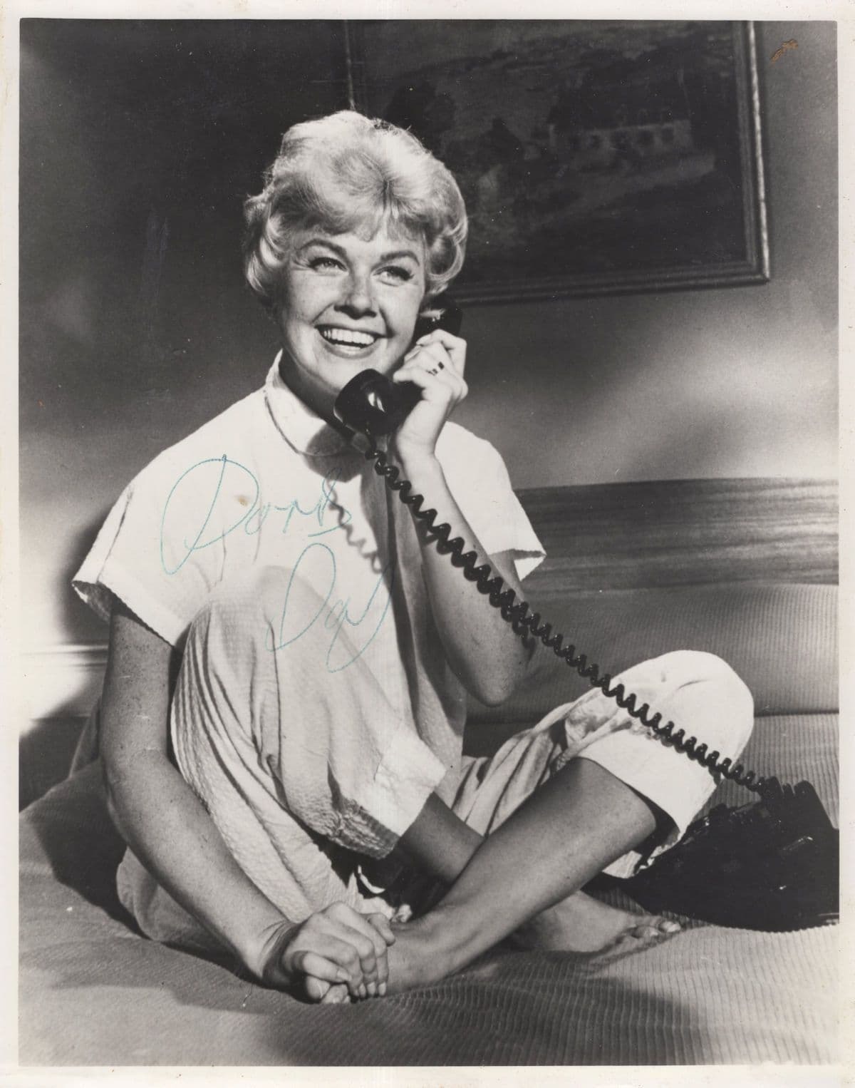 CHA0101 A giant 10x8 original hand signed photo for Doris Day secured under hammer from probably Doris biggest UK collector - please see all my Doris Day sheet musics, club memberships, lobby cards etc all listed a ... Read More
