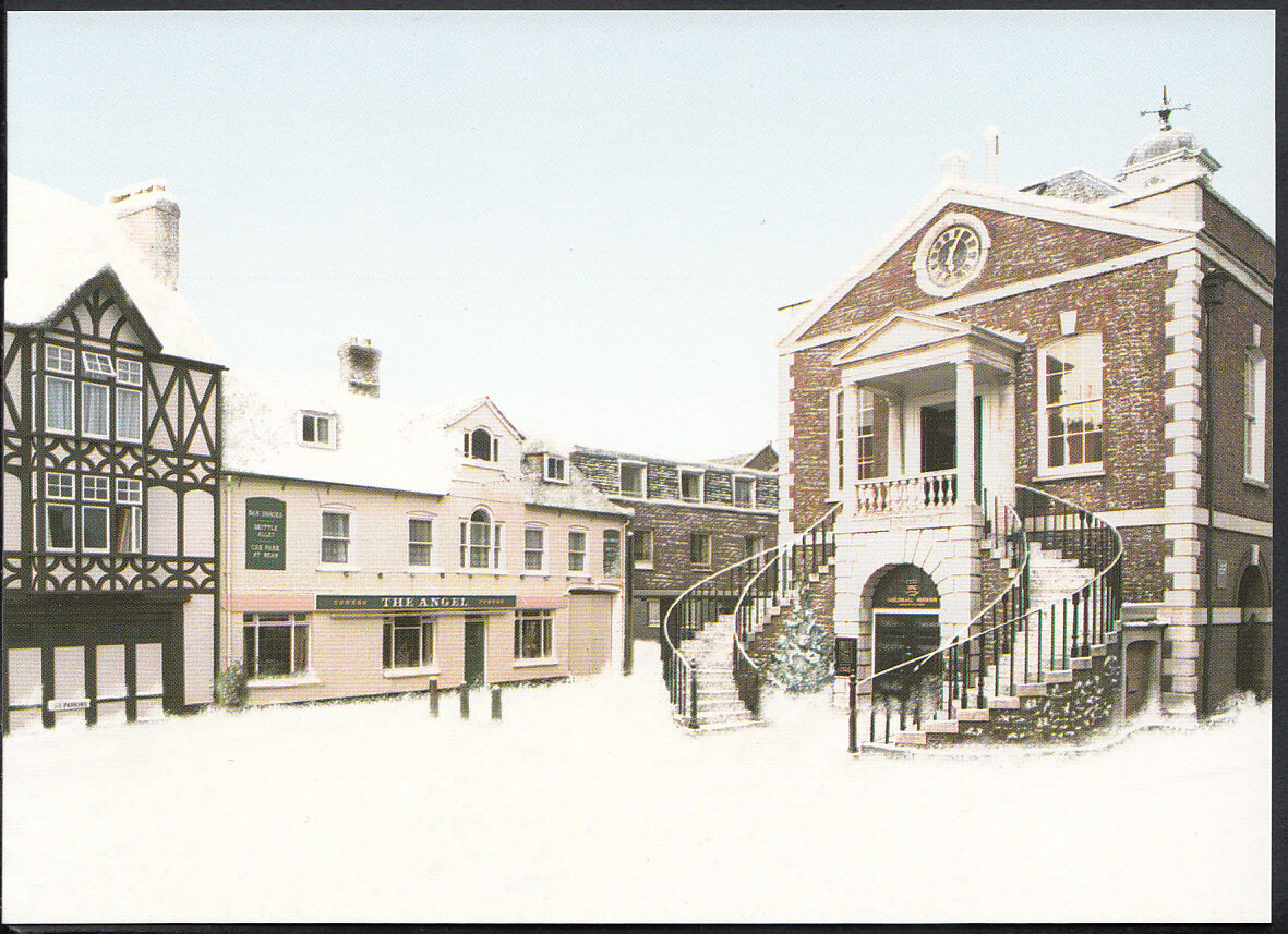 Mo's Postcards Postcard Description: Dorset Postcard - Snow Scene, The Guildhall & The Angel Pub, Poole Defect(s):