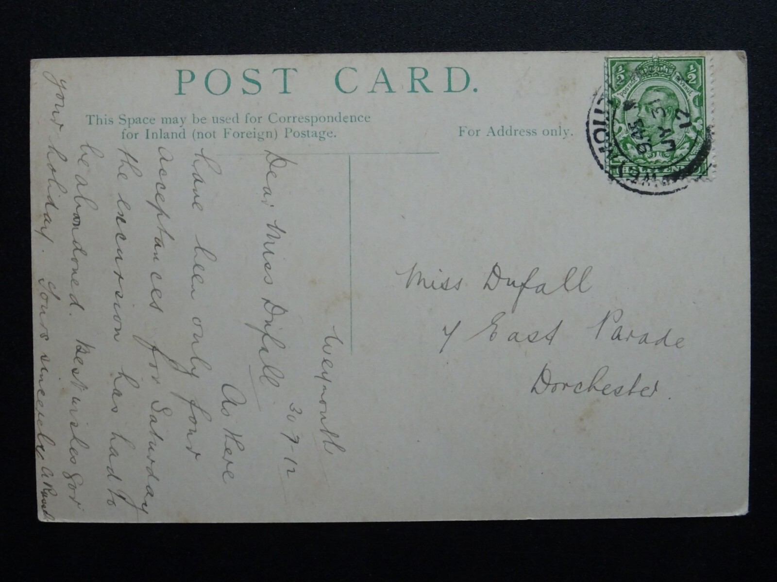 Dorset Weymouth PUPIL TEACHER CENTRE / SCHOOL 3 Image Multiview c1912 Postcard Dorset Weymouth PUPIL TEACHER CENTRE / SCHOOL 3 Image Multiview c1912 Postcard Postcard Details: (PLEASE SEE ITEM SPECIFIC INFORMATION FOR POSTCARD DETAILS) Additional Information - Postcard Condition - Postally - Postcard Details - Please see detail on the photographic image or contact us for details. Abbreviations: (UB) Undivided Back / (RP) Real Photograph Postcard / (PM) Postmark Interest / (CDS) Cancellation Date Stamp / (SQC) Squared Circle / (DP) Duplex PostmarkPTP Reference - 220126 Postcards WelcomeWelcome to our store. At Past Time Postcards we stock a comprehensive range of British antique and vintage topographical postcards, cigarette cards, rare antique prints and other antique collectables.We aim to make your shopping experience enjoyable and stress free. We list our postcards topographically and by subject matter to make it easier for you to locate the items that interest you. Feel free to browse and explore at your leisure, however if you require assistance locating items or have a specific request please don't hesitate to contact us.Combined Postage We will always combine postage when you purchase multiple items. Please make your multiple purchases by using your Hip BASKET where postage will be combined automatically.Postage & PackagingPostage rates are calculated to include postage and packaging. All Full Sets of Cigarette or Trade Cards are posted 1st Class and protected with a plastic sleeves in a BOARD BACKED ENVELOPE & FULL SET HAVE ADDED STIFFNER BOARD for added security and protection. Payment MethodsOur preferred method of payment is through PayPal for all purchases.UK CUSTOMERS can make payment by PayPal, Personal Cheque or Postal Order. PLEASE NOTE: Credit cards included in PayPal payment method Inc. Visa, MasterCard, American Express, Discover. FOR CUSTOMERS OUTSIDE THE UK: we can only accept PayPal as method of payment100% SatisfactionIf in the unlikely event you are unhappy with your item you have purchased on the basis that the postcard was incorrectly described or graded we do offer a complete refund less the cost of postage and packaging once the item is returned to us.Condition & Grading Information(M) Mint – Like new, almost perfect(EX) Excellent – No obvious flaws, sharp corners, clean and if postally used the writing does not detract from appearance.(VG) Very Good - Minor defects such as album marks, signs of age and handling is acceptable that do not detract from appearance.(G) Good – Noticeable defects, handling and wear apparent. Minor creasing or minor postal damage not detrimental to image.(F) Fair – Obvious creasing, staining, small tears or damp damage evident. Significant edge or corner damage.(P) Poor – Incomplete or image seriously affectedFinally if you have any specific requests or questions we are always very pleased to offer support and assist you with your collecting needs.Kind regardsMark - Past Time Postcards Listing and template services provided by inkFrog