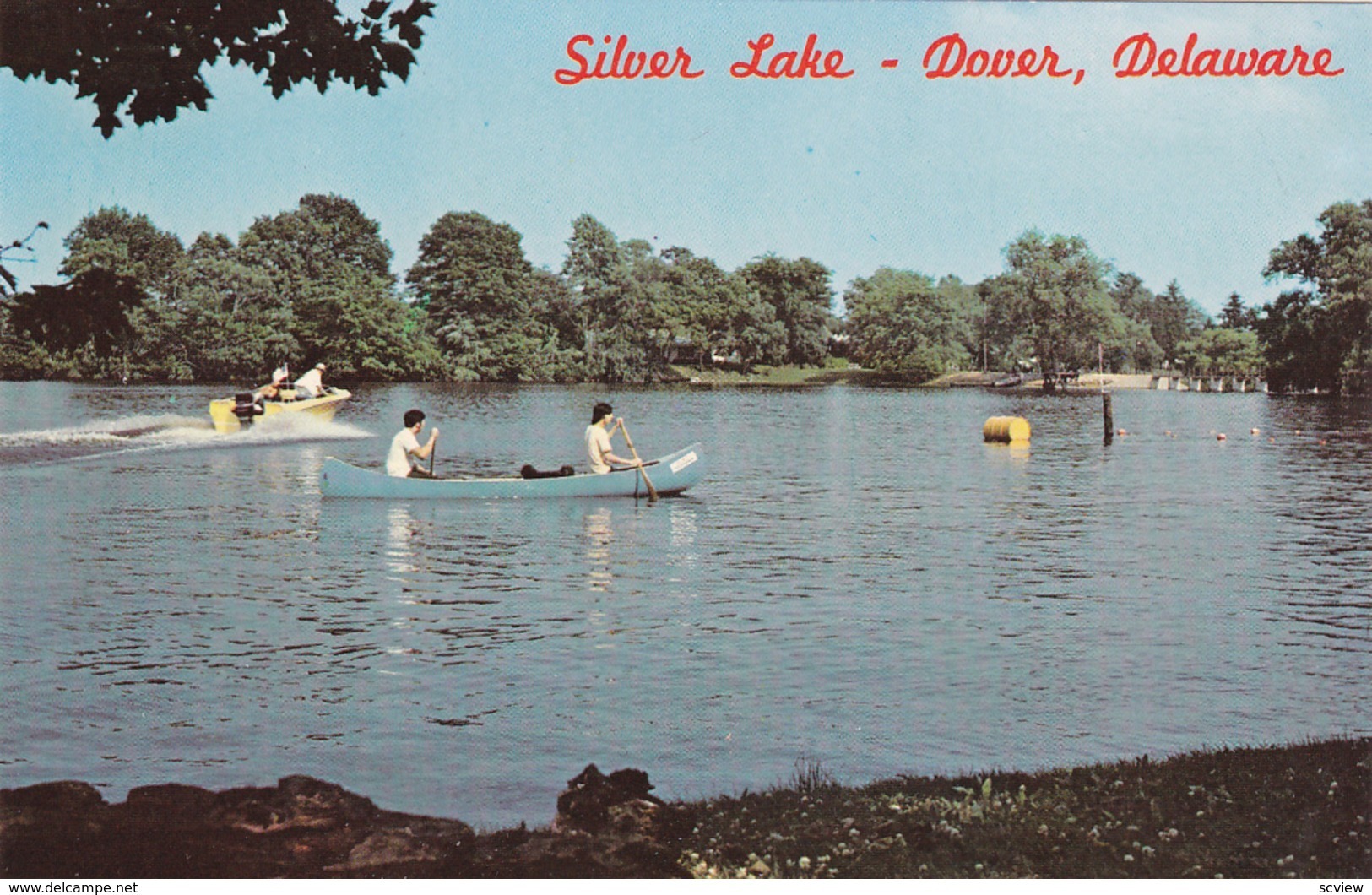 DOVER, Delaware, 50-60s; Canoe, Silver Lake :: Postcard, 3.5" by 5.5", Chrome, EX