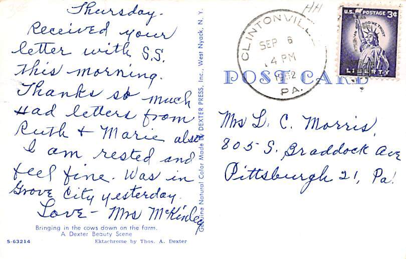 Down on the Farm Cow Postcard Postal Date: {{Product Field 4 ( Postal Used, Unused)}} Grade: 2 Size: Regular Size Postcard - approximately 3 1/2 inch x 5 1/2 inch (9 CM x 14 CM) Grading Scale: Grade 1 = Perfe ... Read More
