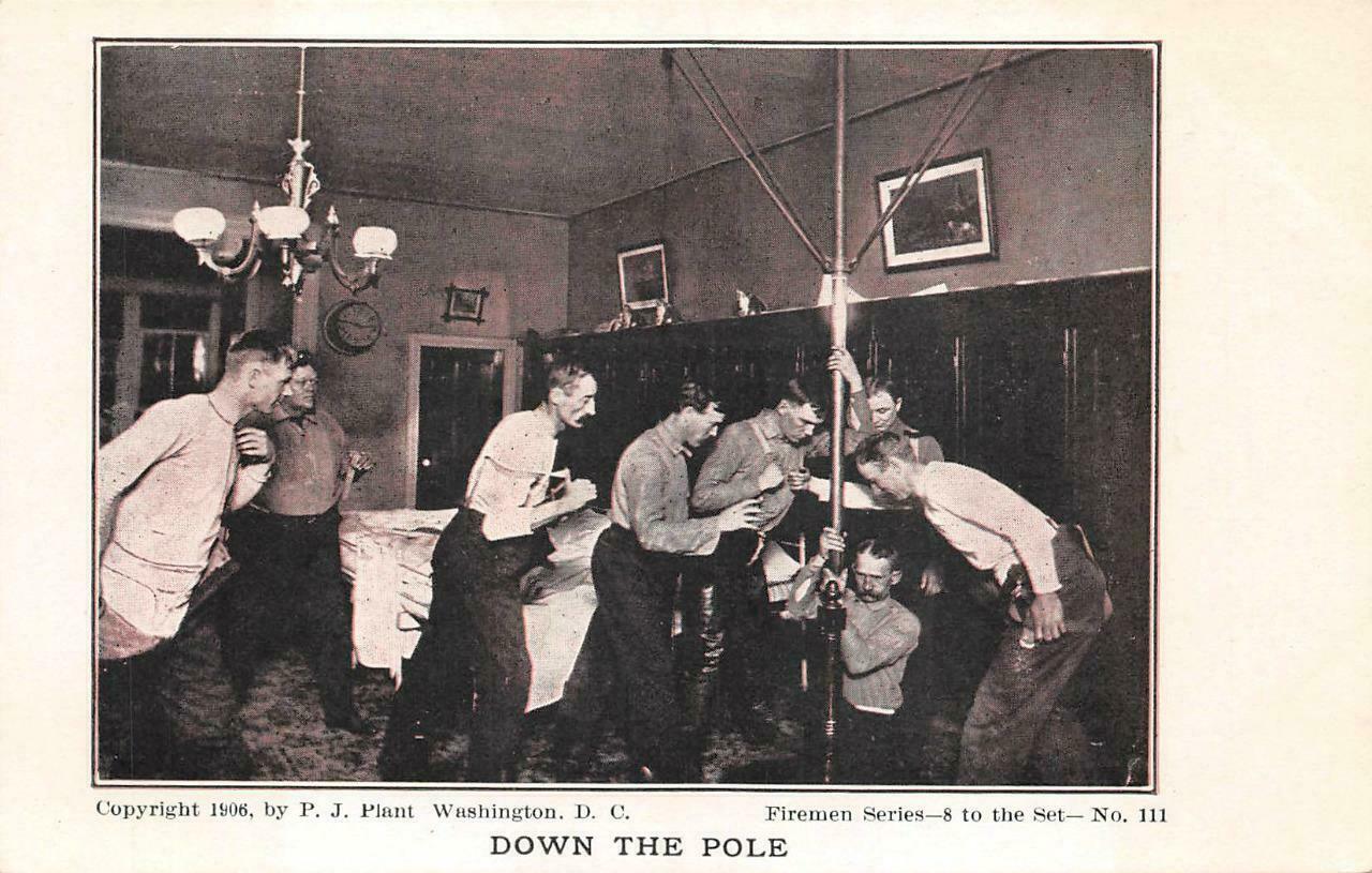DOWN THE POLE FIRE FIGHTING SERIES WASHINGTON DC NO. 111 POSTCARD (1906)