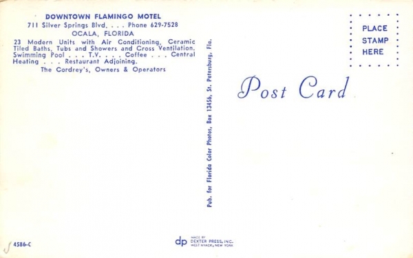 Downtown Flamingo Motel Ocala, Florida Postcard - Unused