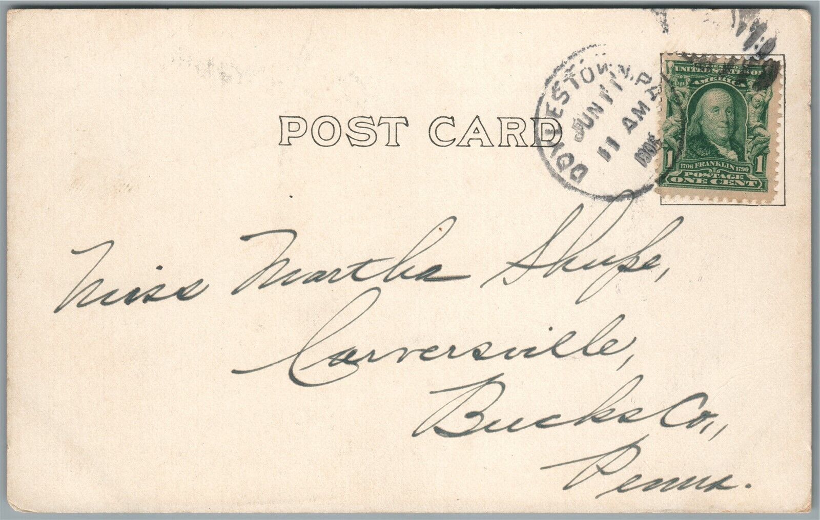 DOYLESTOWN PA WILLOW GROVE TROLLEY 1906 ANTIQUE POSTCARD