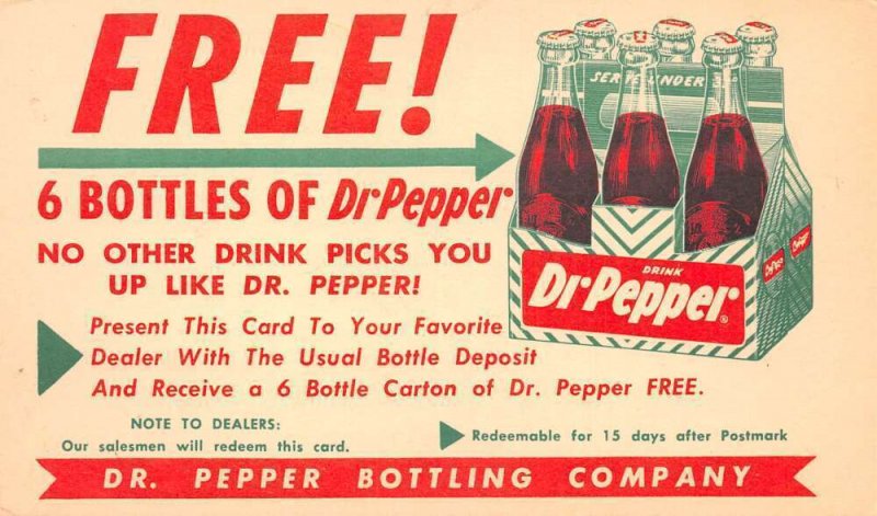 Dr Pepper Coupon Adv 2 Cent Postal Vintage Postcard AA71201