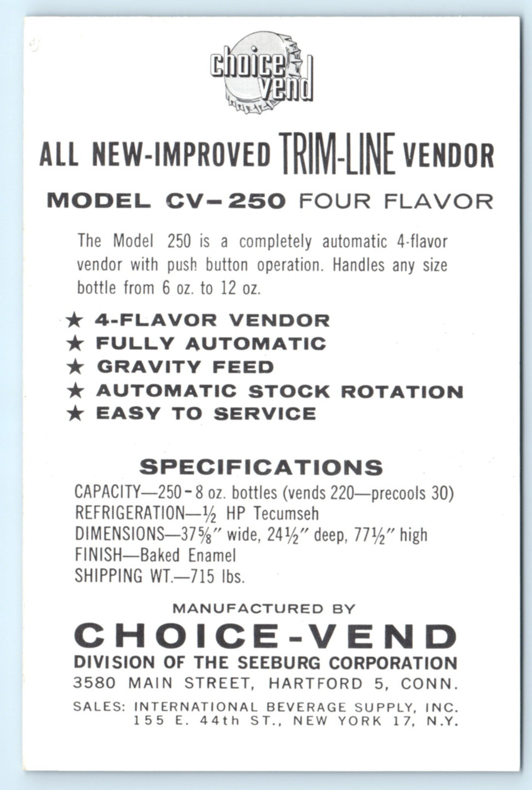 Dr Pepper Model CV-250 Four Flavors Choice Vend Vending Machine Postcard