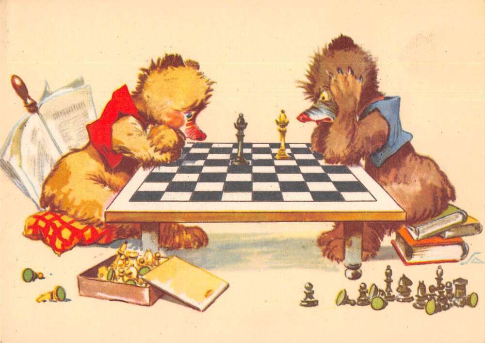 Dressed Bears Playing Chess Vintage Postcard AA24257