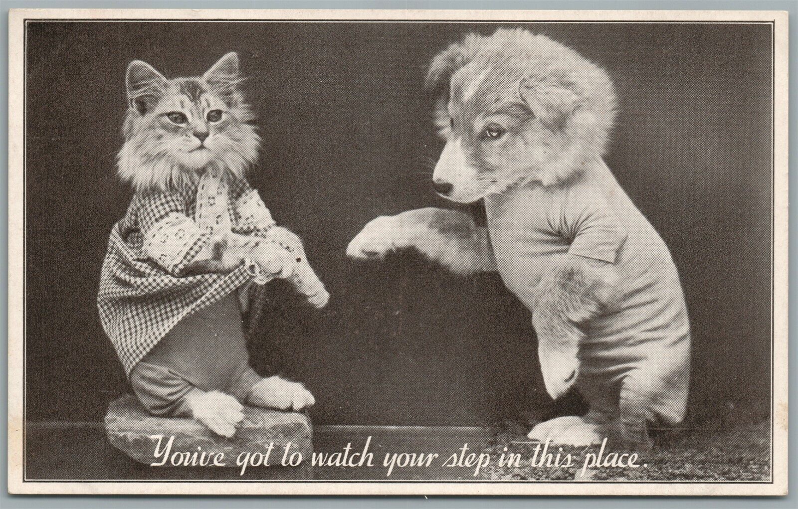 DRESSED CAT & DOG ANTIQUE POSTCARD