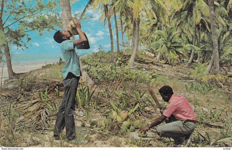 Drinking Coconut milk , Bahama Islands , 1966 :: Postcard, 3.5" x 5.5", Chrome