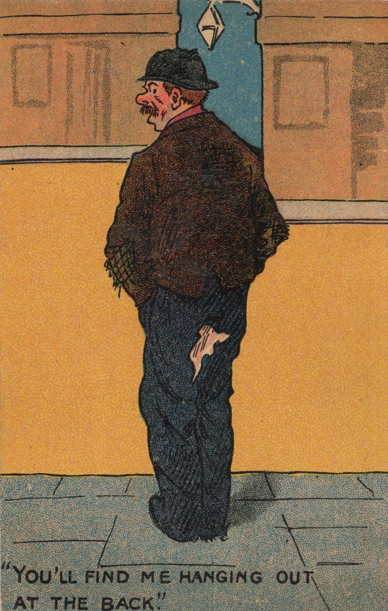 Drunk Man Urinating At Lamp Post Bum Flasher Old Comic Postcard