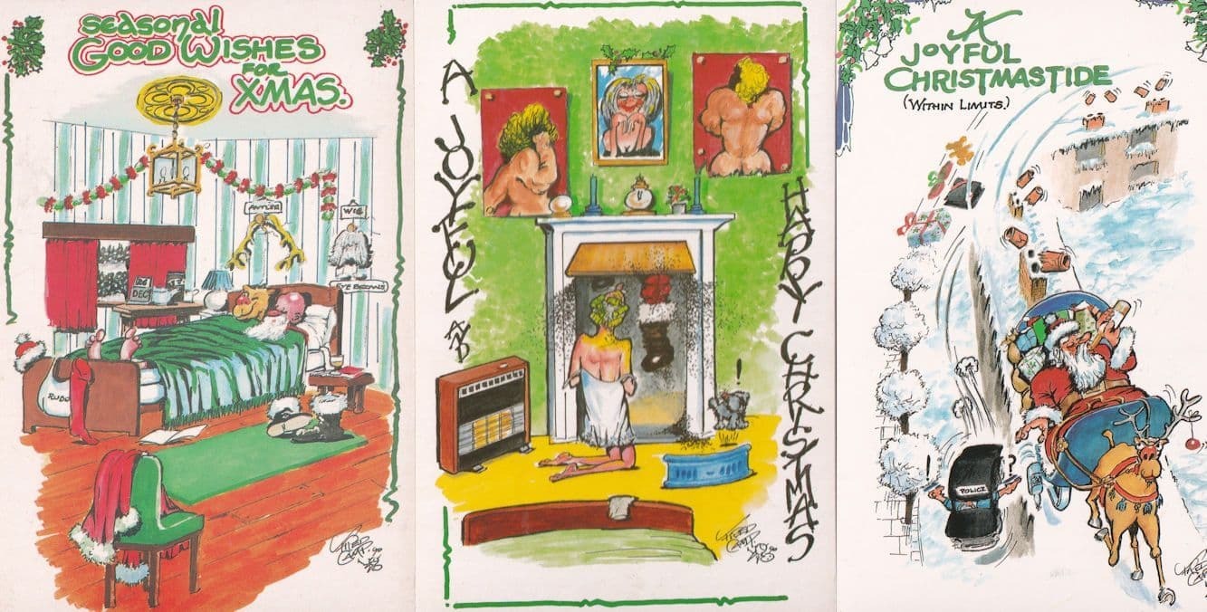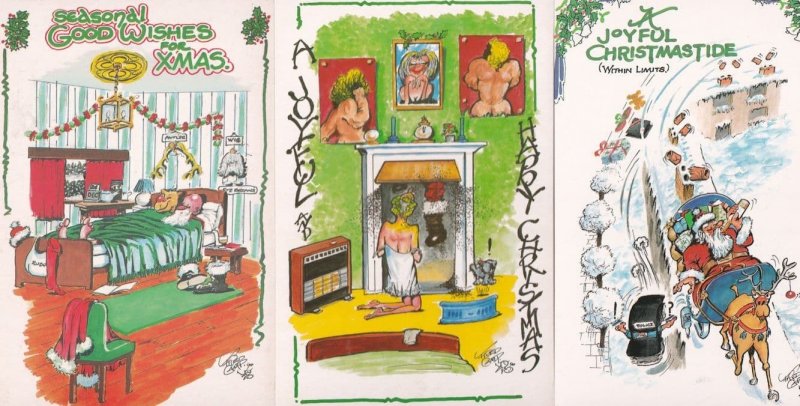 bg322 None of these three rare 1990s postcards will you find published today all depicting Santa as a drunk and a pervert - all are unused and mint. Give these to the family this Christmas and they will wonder how on earth you obtained them !!!