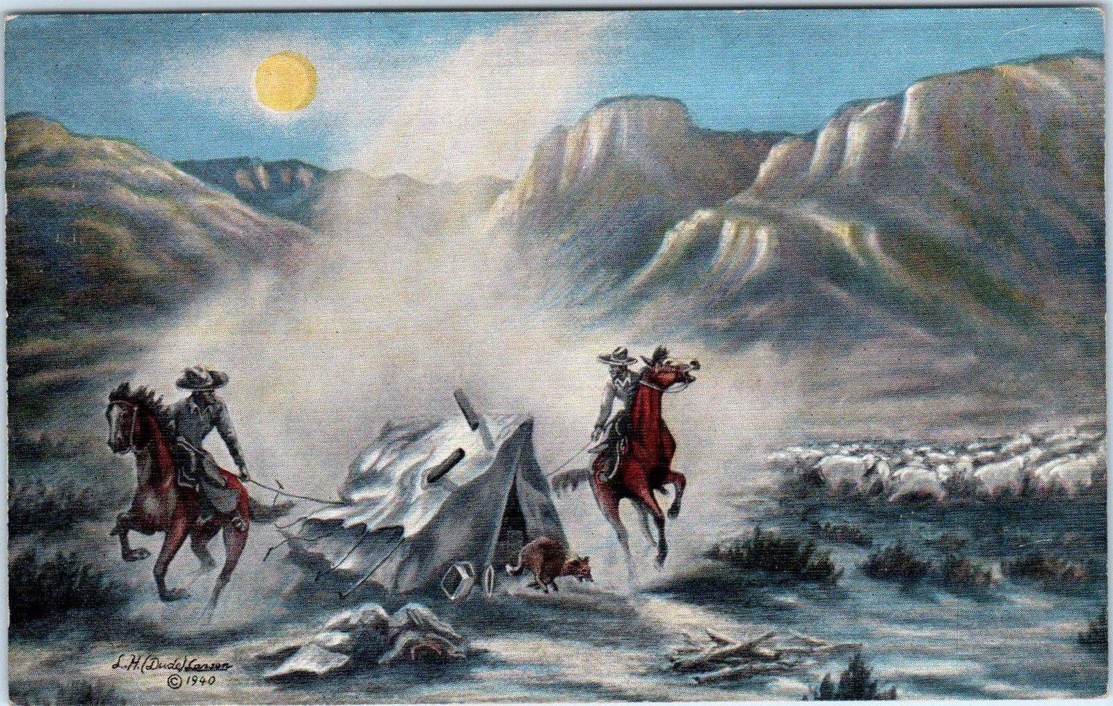 DUDE LARSEN Signed Western Comic "Range Feud" 1946 Linen Postcard