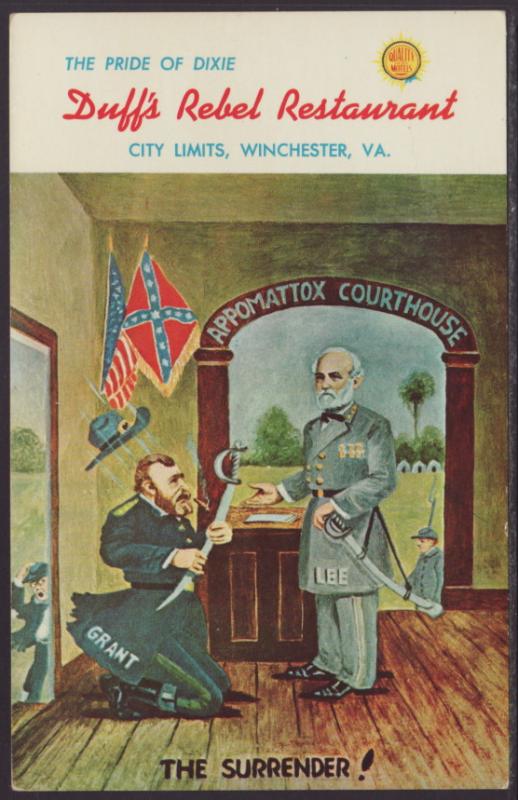 Duff's Rebel Restaurant,Winchester,VA Postcard Unused Chrome divided back Near Mint Grading Terms MINTÂ - Perfect in every way, regardless of age. Rarely seen, may not exist. NMÂ - Near Mint, you have to look ... Read More