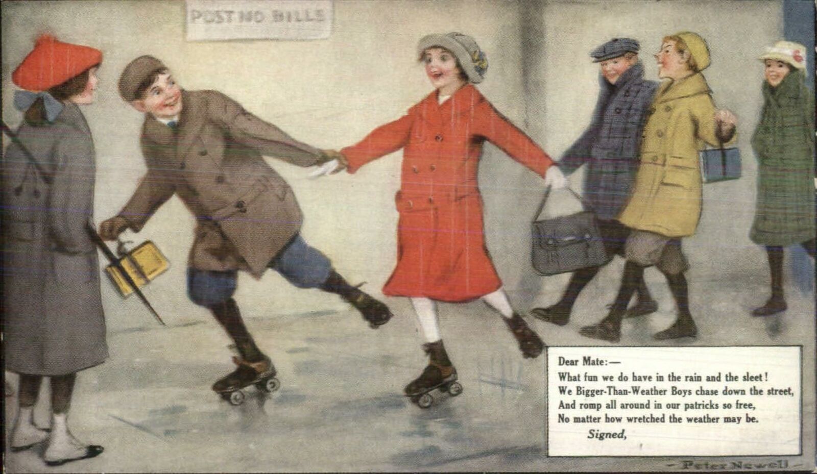 Duluth Bigger Than Weather Boys Clothing Roller Skating #4 c1910 Postcard