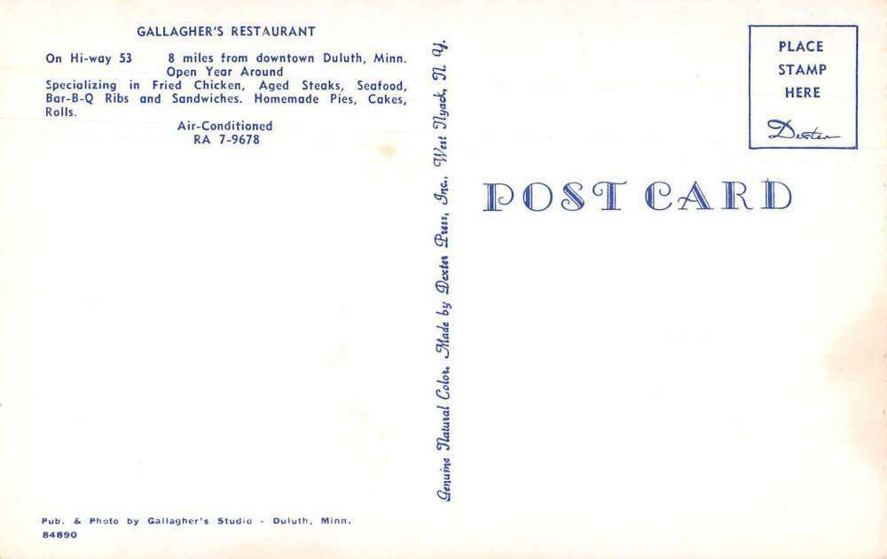 Duluth minnesota gallagher's restaurant interior vintage postcard j78155