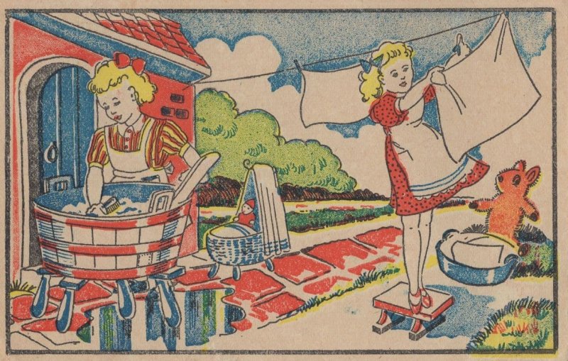 Dutch Laundry Teddy Bear Doll Netherlands Old Postcard