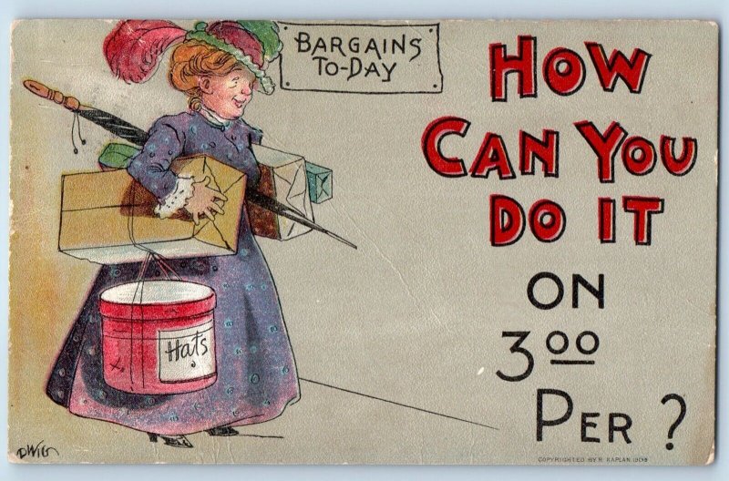 Dwig Signed Postcard Woman Bargain's Today How Can Do It Moberly MO c1910's