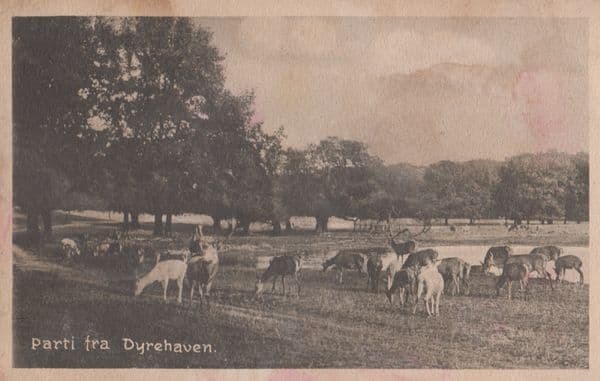 a-zi-d Antique 100 year old card showing cattle in Dyrehaven with surface browning (aging) so please allow - some brown discoloration so overall just fair - please be fully aware but a very early card