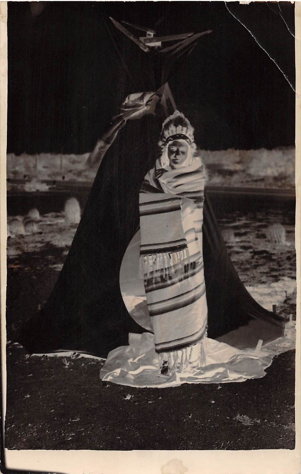 E14/ Native American Indian RPPC Postcard c1940s Indian Chief Tepee Negative 4