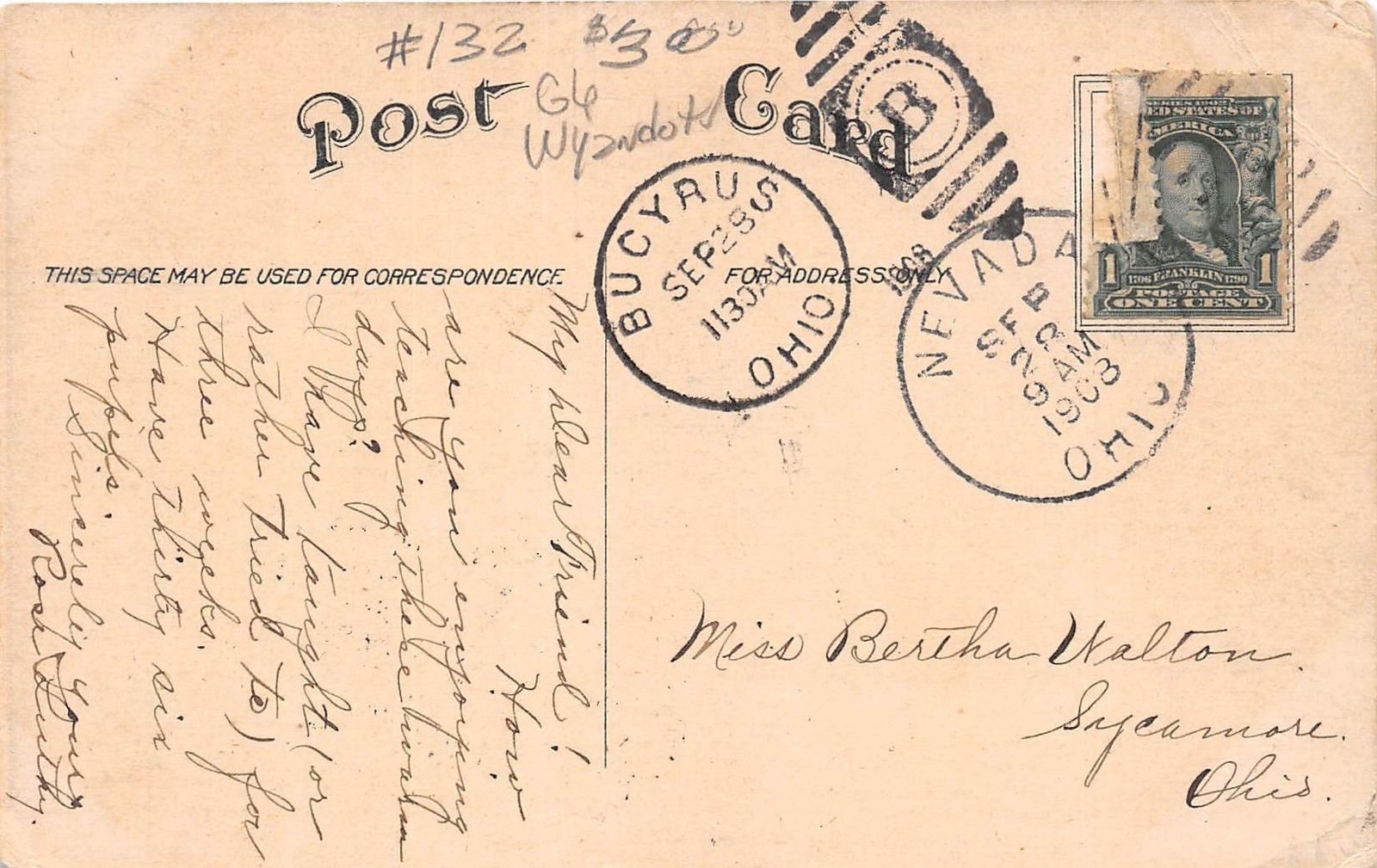 E15/ Nevada Ohio Postcard 1908 High School Building