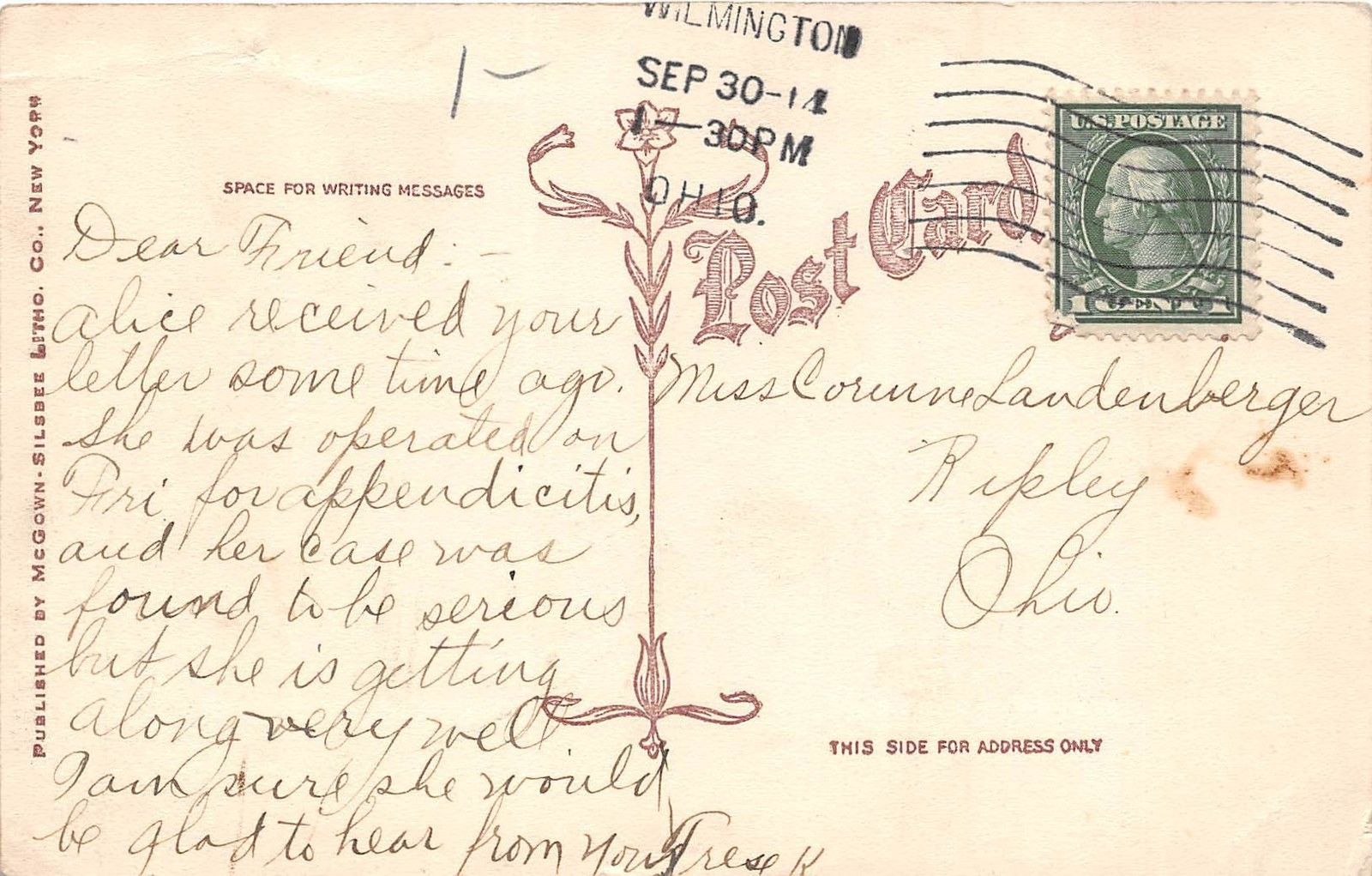 E46/ Wilmington Clinton County Ohio Postcard c1914 High School Building