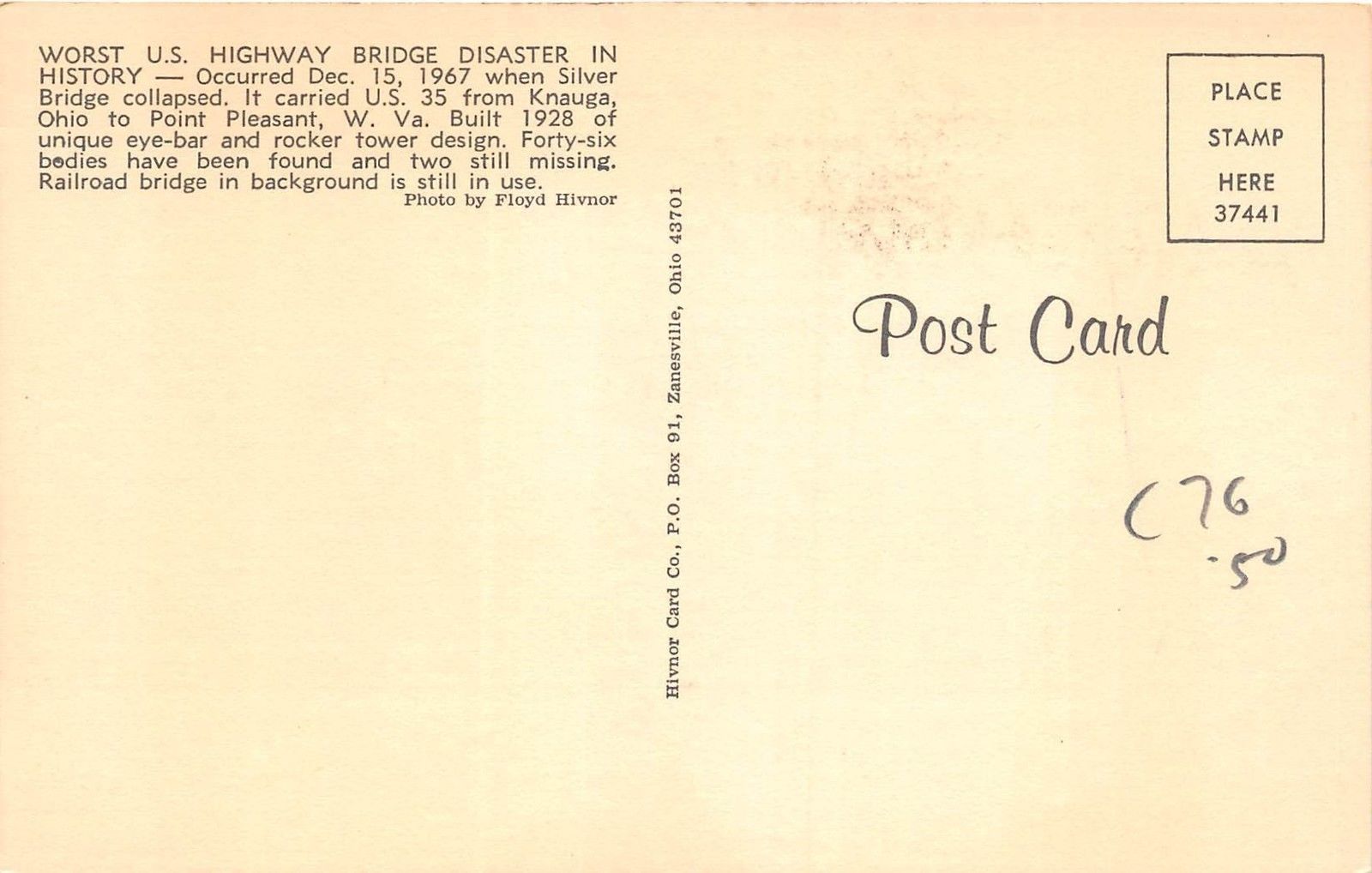 E7/ Knauga Ohio Point Pleasant W Va Postcard Chrome Silver Bridge Disaster