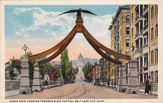 Eagle Gate Looking Towards State Capitol Salt Lake City Utah