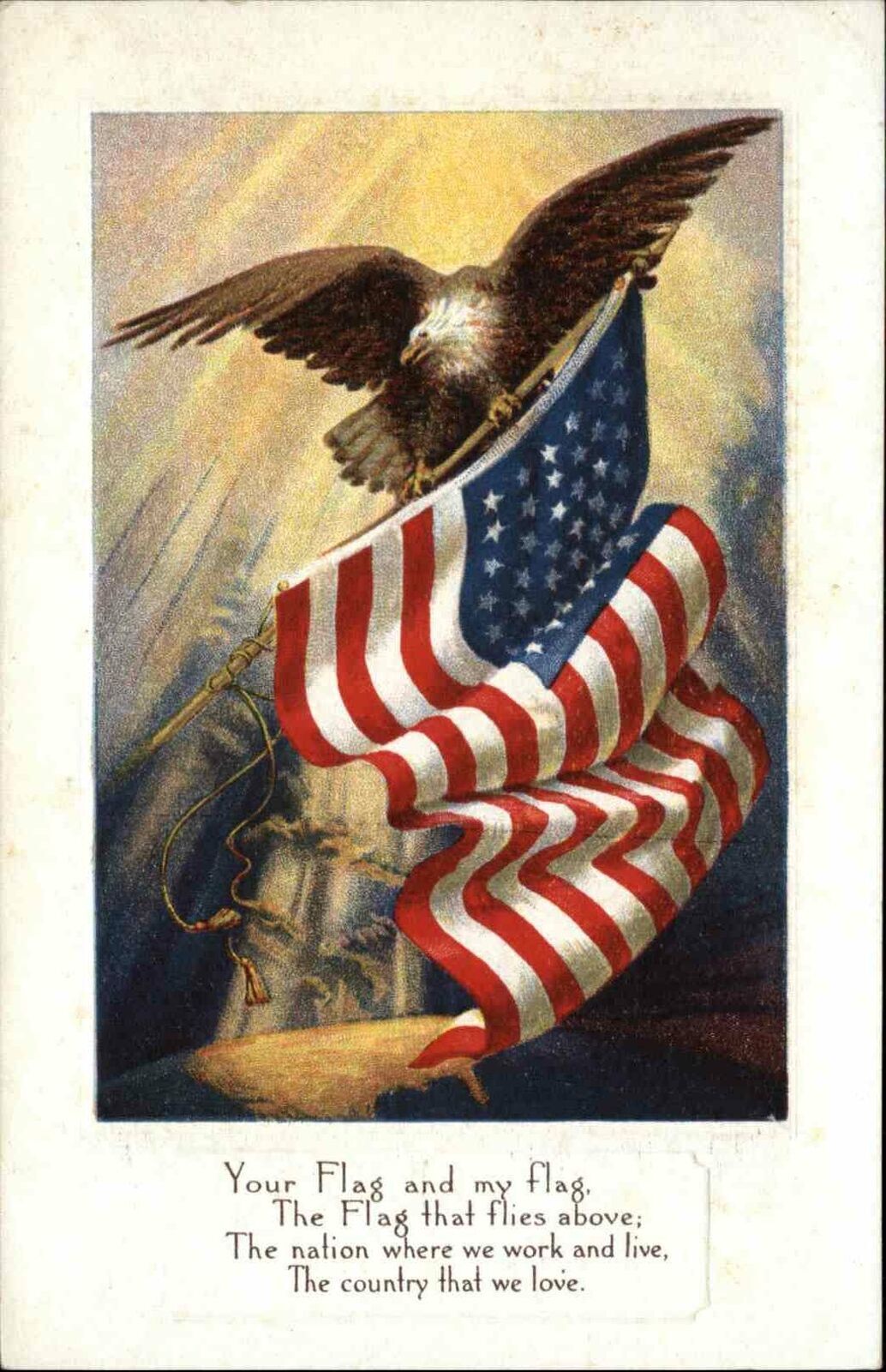 Eagle with American Flag EMBOSSED c1910 Postcard