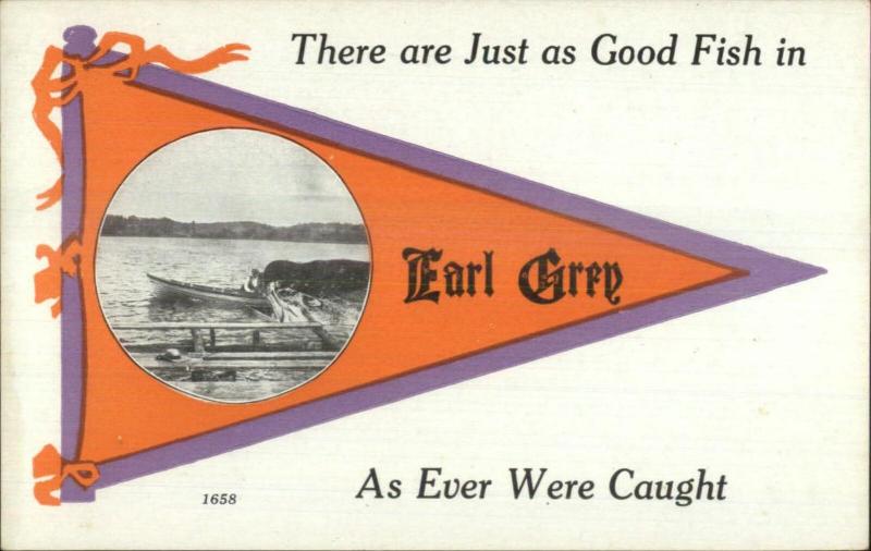 Earl Grey Saskatchewan? Fishing Exaggeration & Pennant c1910 Postcard