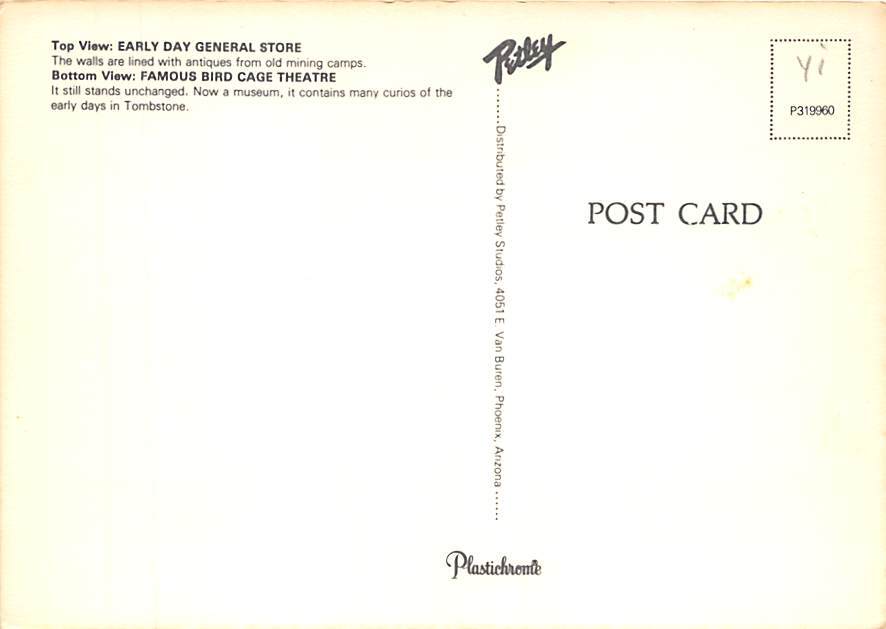 Early Day General Store, Tombstone, Arizona Postcard - View Images Grade: 1 Size: C - Continental Size Postcard - approximately 4 inch X 6 inch (15 CM X 10.5 CM) Grading Scale: Grade 1 = Perfect corners Grade 2 ... Read More