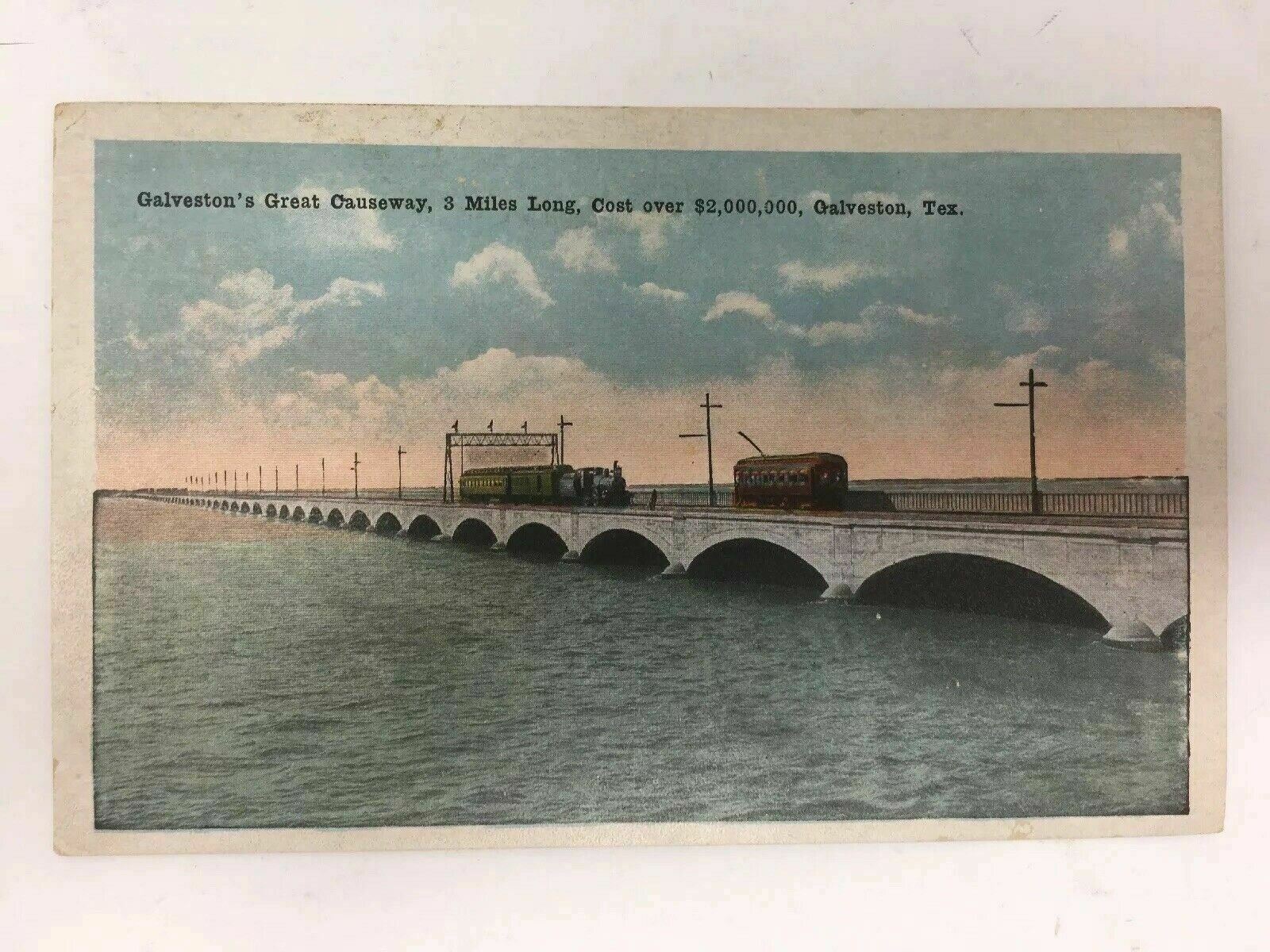 Early Galveston Great Causeway Postcard Train Railroad
