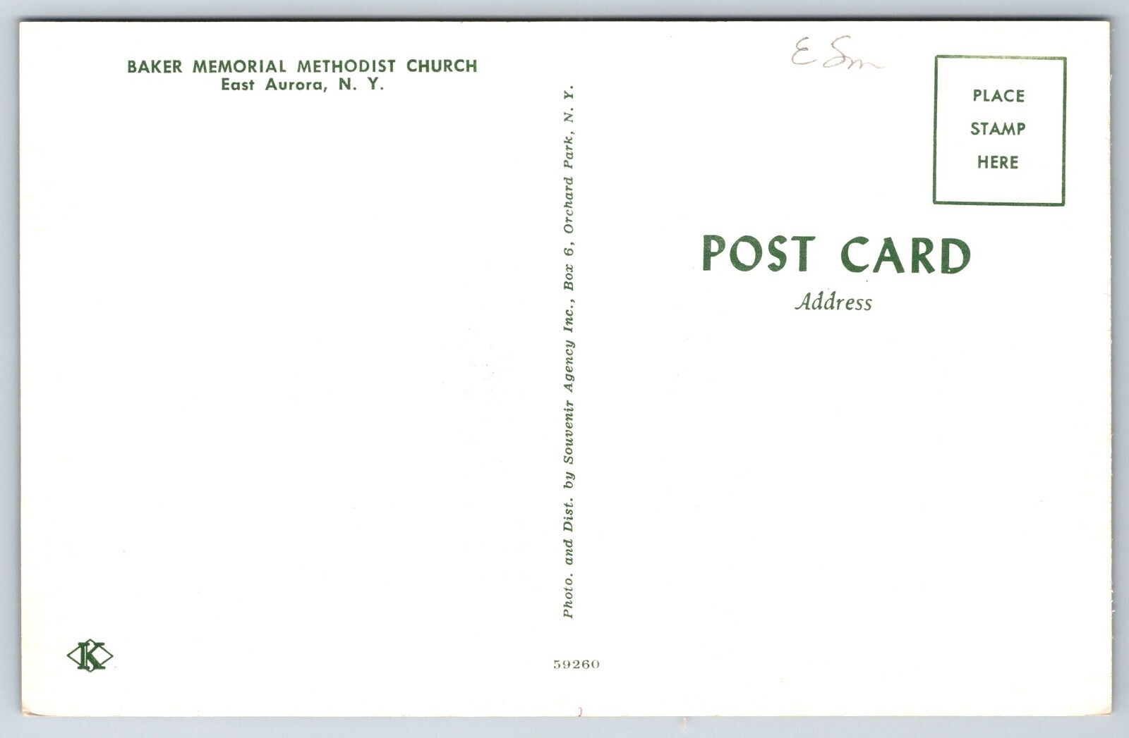 East Aurora New York~Baker Memorial Methodist Church~Koppel Vintage Postcard