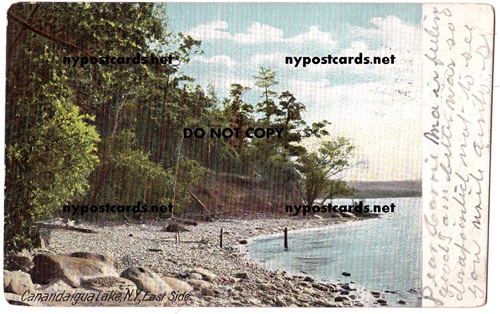 East Side, Canandaigua Lake Ny Description: Postal Usage: PM 1908 Condition: Good Type: Printed Note: County: Ontario Co. > Canandaigua Lake