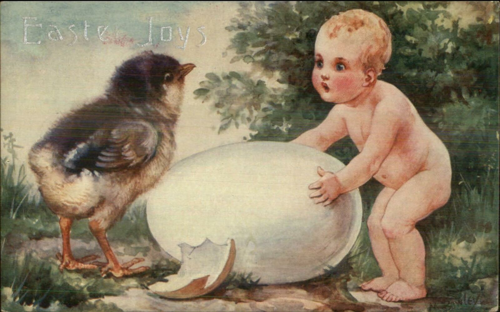 Easter - Bare Butt Baby Chick & Giant Egg BOWLEY c1910 Postcard