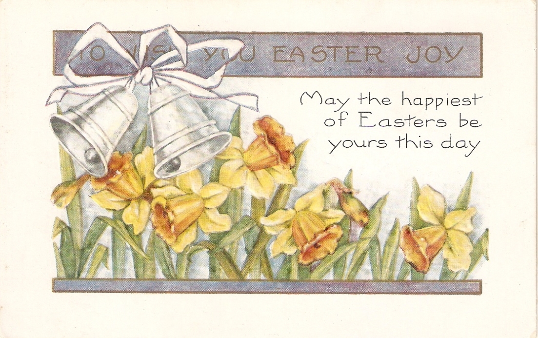 "easter bells.. Flowers" old vintage american easter greetings postcard.