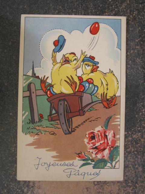 EASTER - CHICK IN WHEELBAROW - FRENCH CHAPEAU Postcard