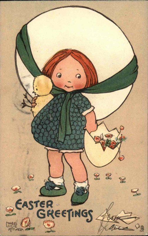 Easter Children Chick Eggshell Hat Vintage Postcard