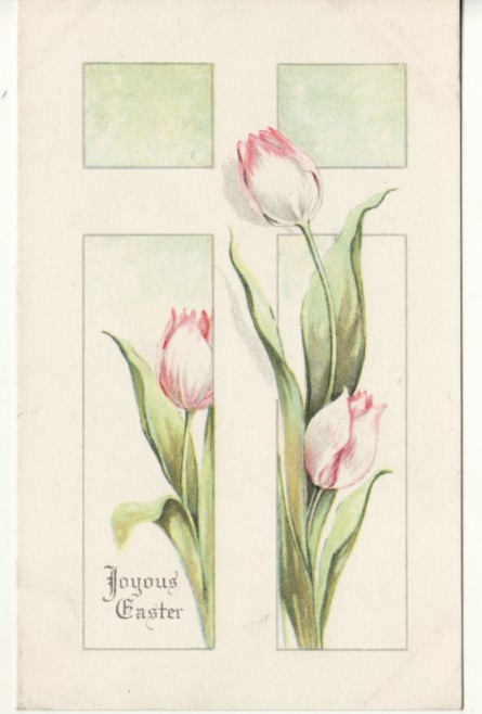EASTER CROSS and TULIPS Gibson Art postcard