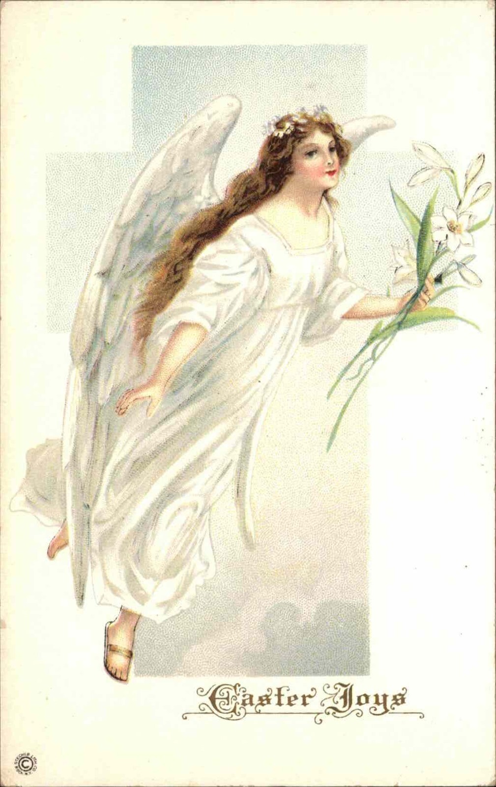 Easter Embossed Angel White Flowers c1900-20S Vintage Postcard